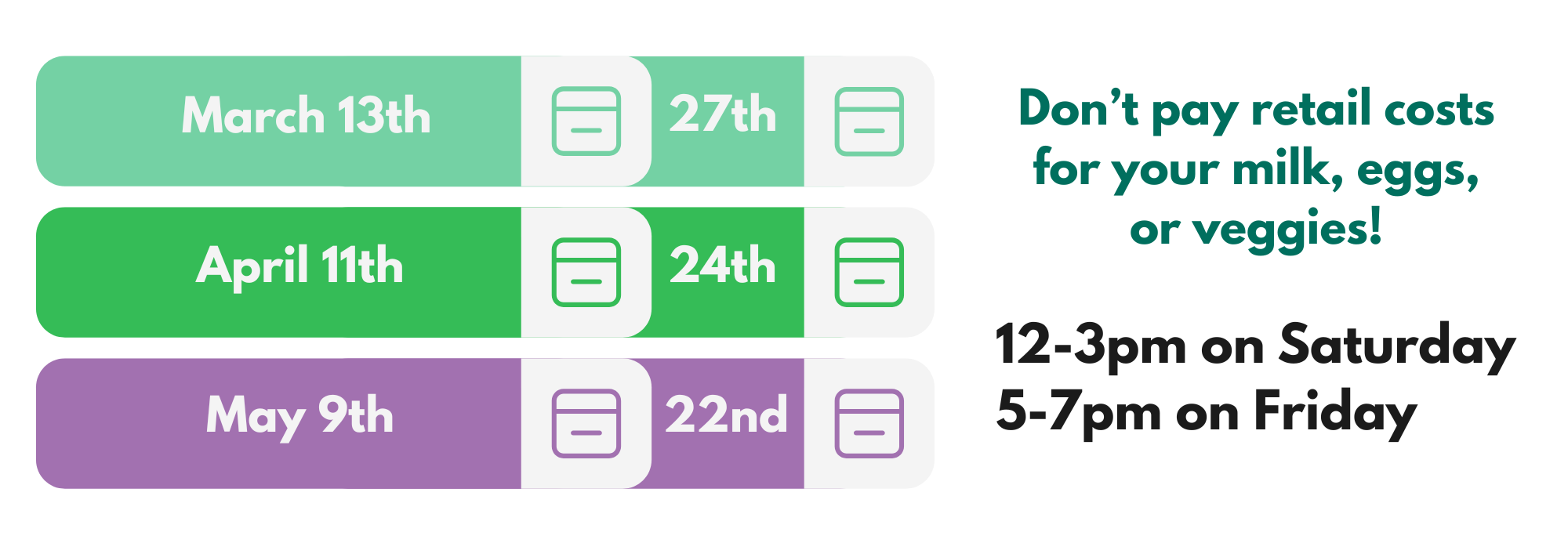 The first service of the Food Justice program is the Bulk Buy Collective, located at 33914 Essendene Ave. Those who participate in the collective can access fresh produce (and now eggs or milk!) at wholesale prices through shared purchasing power. Produce is ordered from a primary wholesaler, FreshPoint BC with items from Archway Urban Farm during their harvesting season.